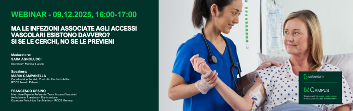 È da questa consapevolezza che nasce il webinar "Ma le infezioni associate agli accessi vascolari esistono davvero? Si se le cerchi, no se le previeni", organizzato con il contributo non condizionante di Solventum. L'appuntamento è per martedì 9 dicembre (ore 16:00-17:00) sulla piattaforma Salute.Live.